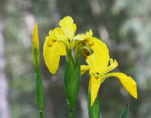 The yellow flag iris is a vigorous marginal plant for garden ponds, stream banks and bog gardens. It is best planted in a basket to restrict it's growth and evasion. Iris pseudacorus can be a useful plant for emergent damselflies and dragonflies and is host to the bright blue flea beetle, Aphthona nonstriat and may also attract bees. In the wild it is the food plant for several uncommon moths.